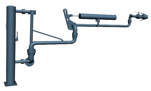 底部装卸臂主要由固定、回转、操作、平衡等机构和油管组成。底部装卸臂是主要用于铁路、公路装卸油鹤管主要用于铁路油槽车和公路油罐汽车的装卸流体作业的专用设备。鹤管在装车前,操作人员需要对油库油台设施的完好性进行检查,查看油车是否配置防火罩。