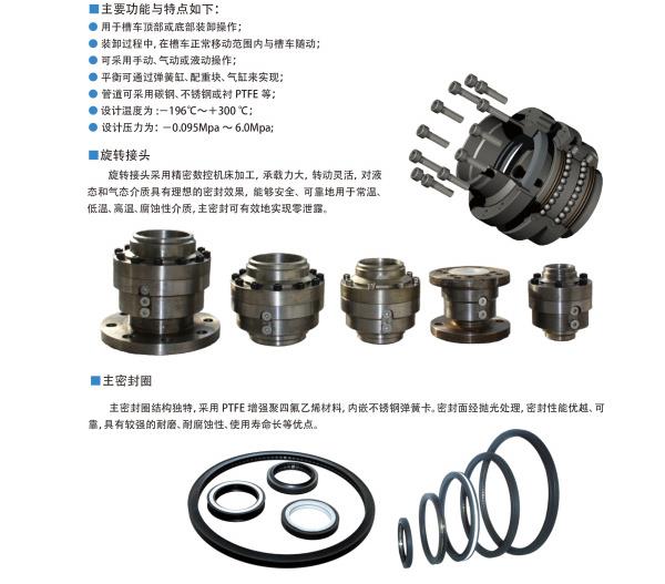 旋转接头采用精密数控机床加工,承载力大,转动灵活,对液态和气态介质具有理想的密封效果,它能够安全、可靠地用于常温、低温、高温、腐蚀性介质,主密封可有效地实现零泄漏。